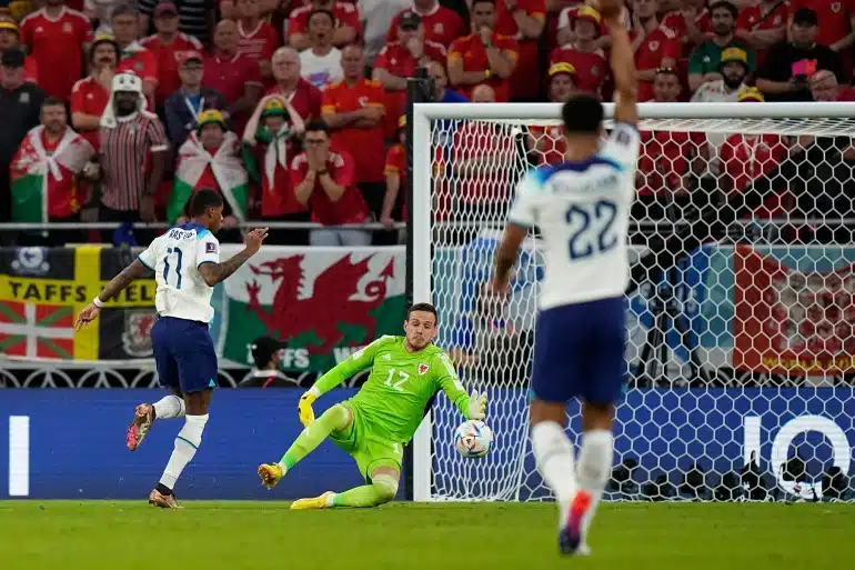 Rashford kills off Wales after dancing through the Welsh defence! He shoots straight at Danny Ward in goal, who should probably do better but it deflects off his foot and into the net.