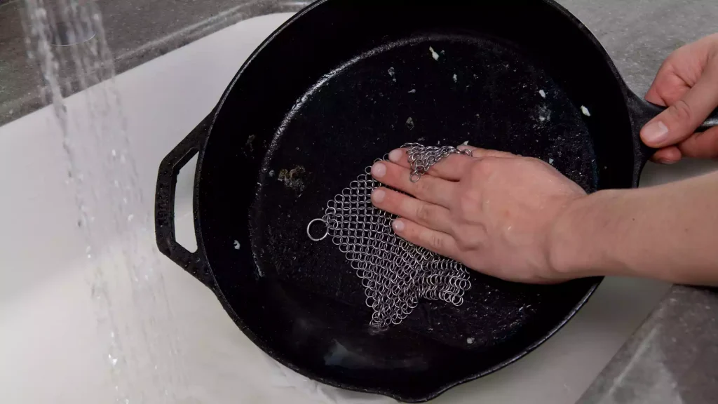 It’s important to note that you should never put a cast iron skillet in the dishwasher or let it soak in water, as this can damage the skillet’s seasoning and cause rust.How to clean Cast Iron Skillet