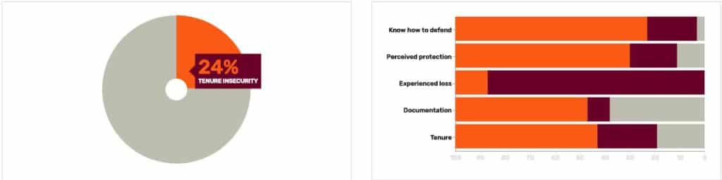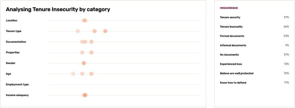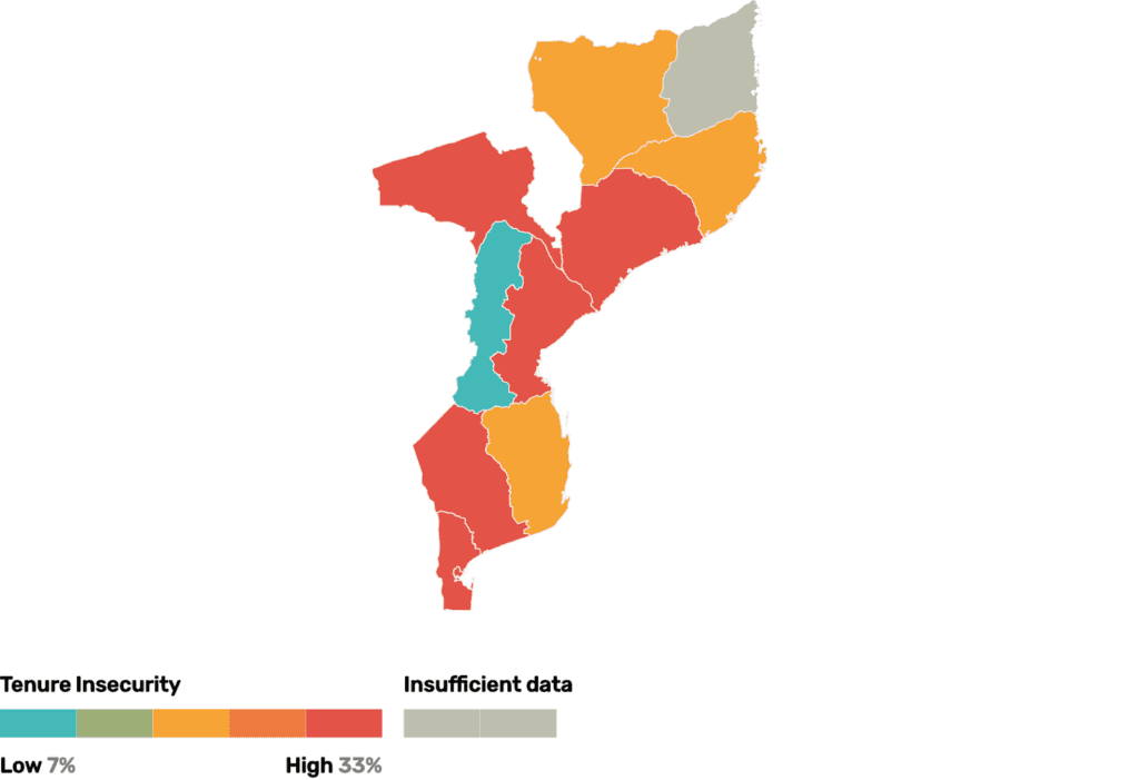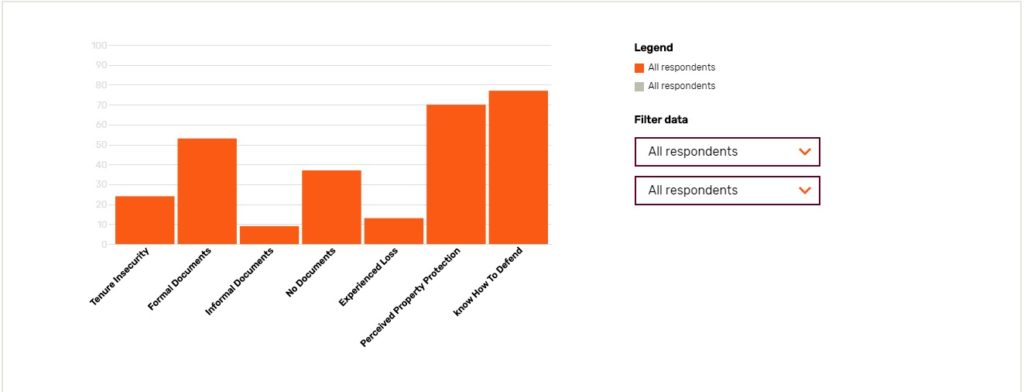 The numbers are similar between rural and urban areas, but uncertainty is higher in the northwest of the country. Woman are somewhat more insecure than men. Those without formal documentation are less optimistic about the chances of their property being protected in the event of a dispute.