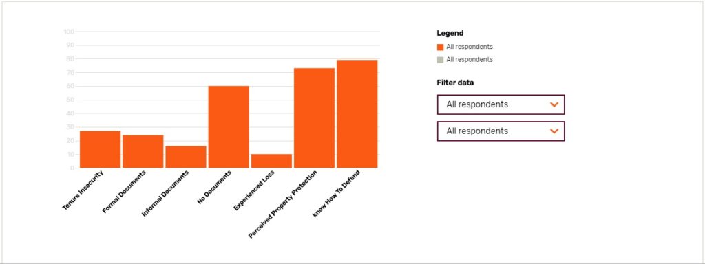 Formal law and policy supports women’s property rights, prohibits gender-based discrimination and aims to allocate 50% of all land available to women, with the remainder competed for by both men and women. Lack of statistics means it is difficult to see if these targets are being achieved.