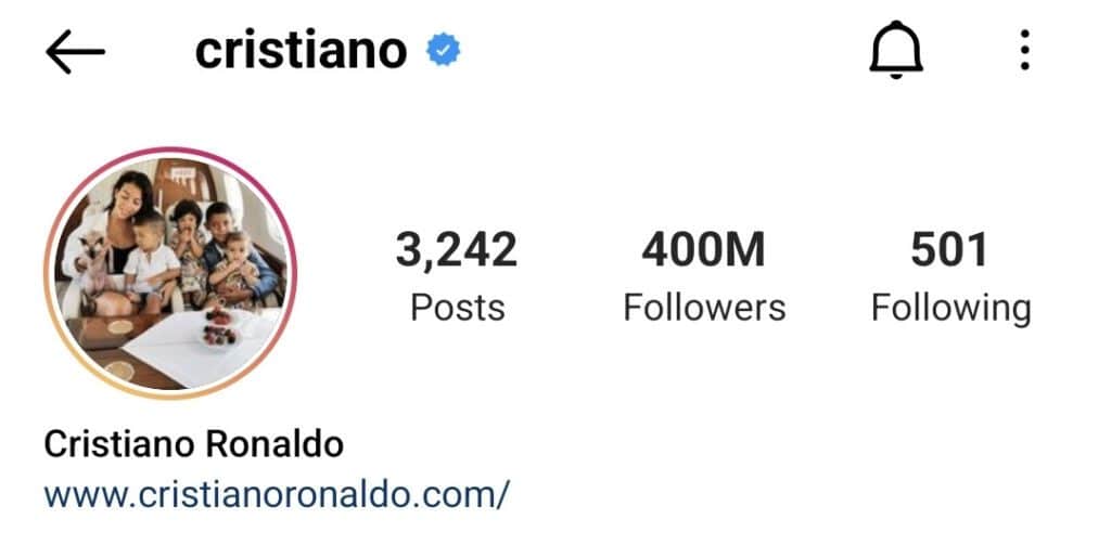 Portuguese professional footballer who plays as a forward for Premier League club Manchester United and captains the Portugal national team, Cristiano Ronaldo becomes the first person to reach 400m followers on Instagram.