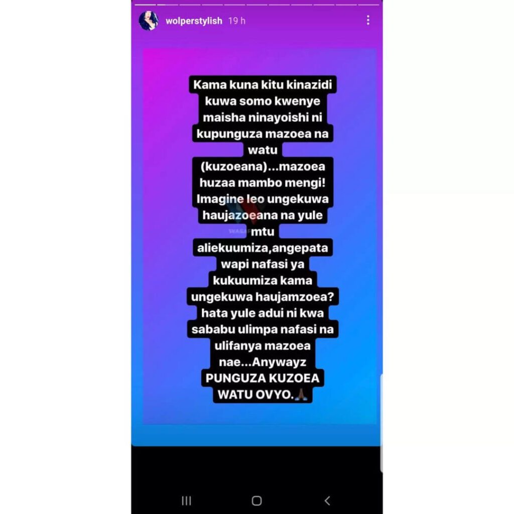 Hata Yule Adui Ni Kwasababu Ulimpa Nafasi Na Mazoea Anywayz …PUNGUZA KUZOEA WATU OVYO ?” – Wolper