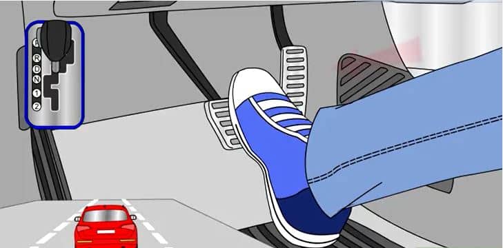 - Put your foot on the brake.