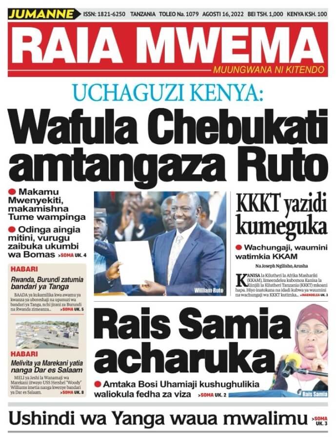 RELATED: Magazeti ya leo August 13 – Habari kubwa katika Magazeti ya leo