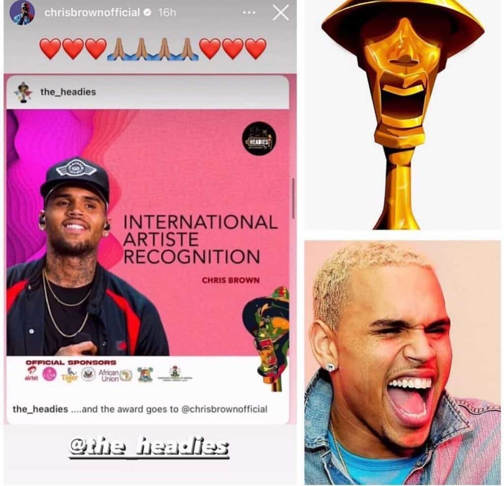 American iconic singer, songwriter, and performer, Christopher Maurice Brown, popularly known as Chris Brown, has reacted to his recent headies win.