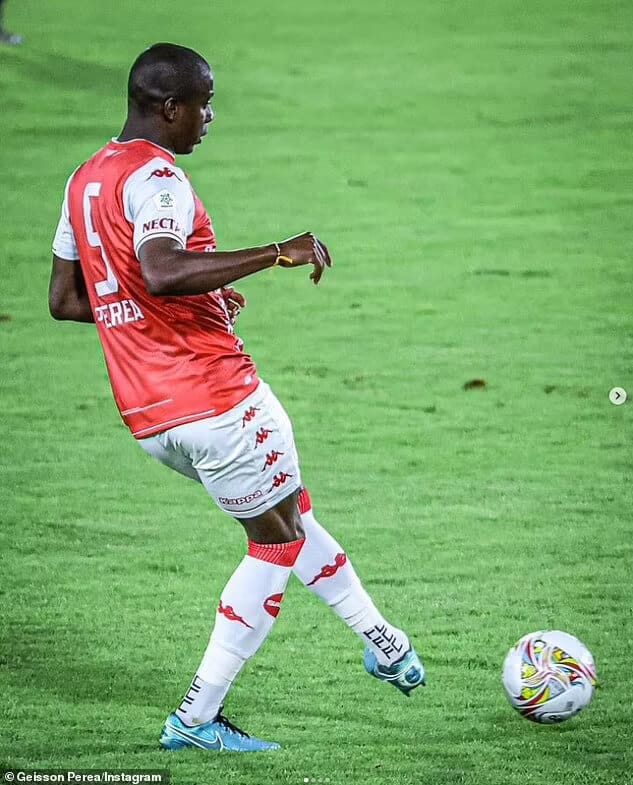 During the weekend game, Independiente Santa Fe defender, Geisson Perea exposed his penis while standing in the wall as a player from Jaguares de Cordoba lined up a free kick.