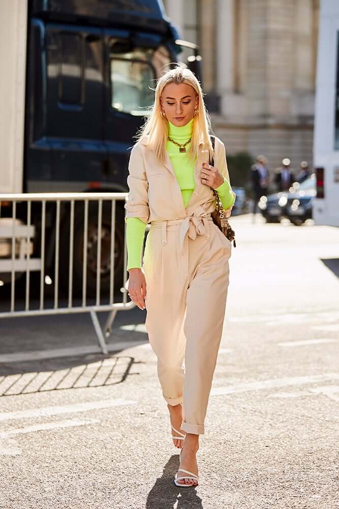 If you don’t feel comfortable wearing bright and bold colors, but you find soft tones a bit flat for a photoshoot outfit, you can combine both worlds.