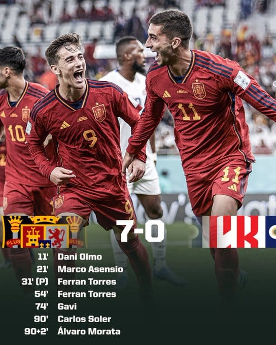 VIDEO: Spain 7 – 0 Costa Rica World Cup 2022 Goals Highlights