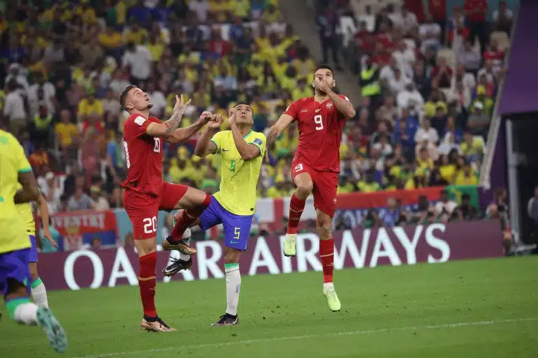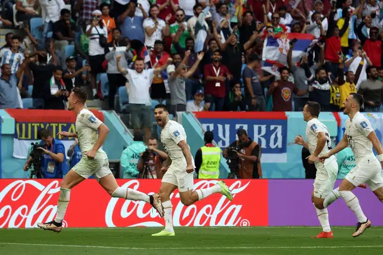 Serbia score twice, with their first two shots on target in the World Cup.