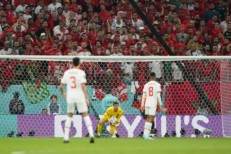 Thebaut Courtois was Belgium’s best player in their first game against Canada. His string of saves kept a spirited Canada side at bay. But so far, he’s been relatively untroubled by Morocco.