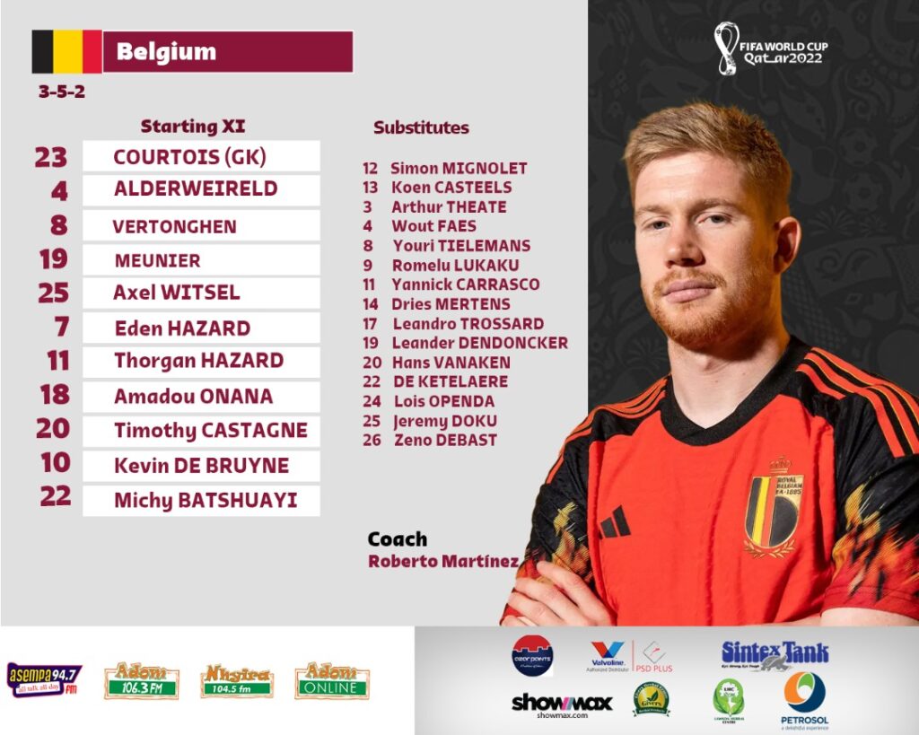 Belgium will go in with a 3-5-2 formation, while Morocco will sport a slightly more aggressive 4-1-2-3 scheme.