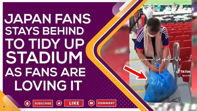 Japanese fans stayed following the Qatar vs. Ecuador match to clean the stadium.