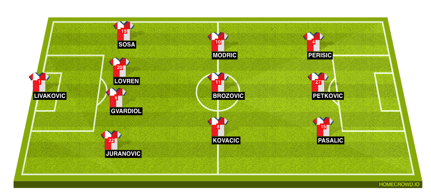 The Croatia midfield three pretty much picks itself, with Luka Modric, Marcelo Brozovic, and Mateo Kovacic set to start. Brozovic will be expected to carry out the defensive duties, while Kovacic and Modric will help control the ball and create opportunities for the attackers.