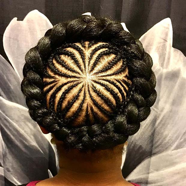 This hairstyle is brilliant. Cornrow your hair from one side to the other from midway to the nape of your neck. Let your curls fall in front like a mohawk.