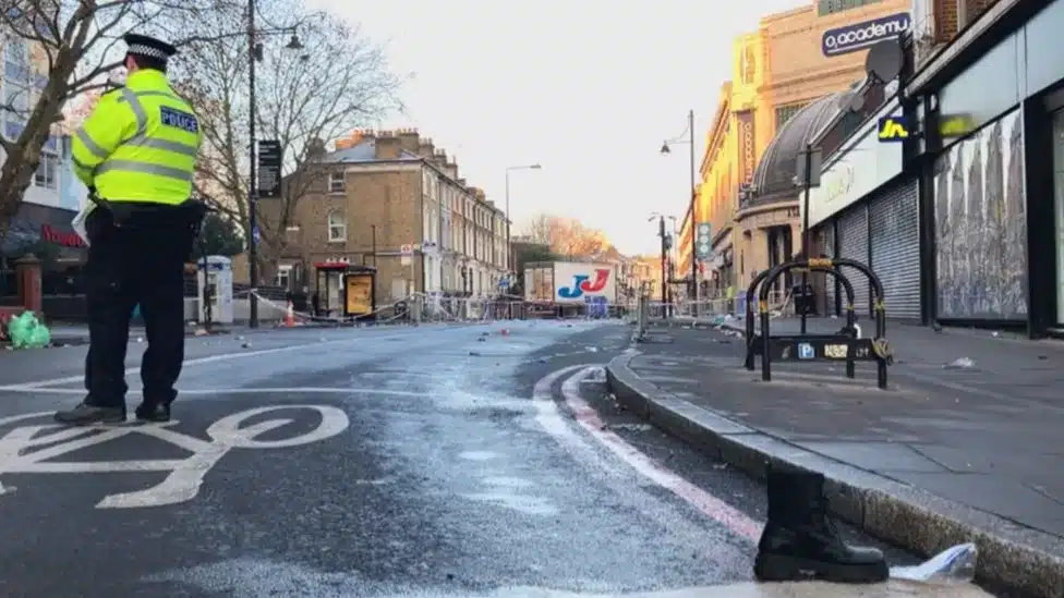 The venue is opposite Brixton police station, partly explaining the swift response on Thursday night. There are plenty of officers at the scene and you can see broken glass on the floor by the door to the venue.