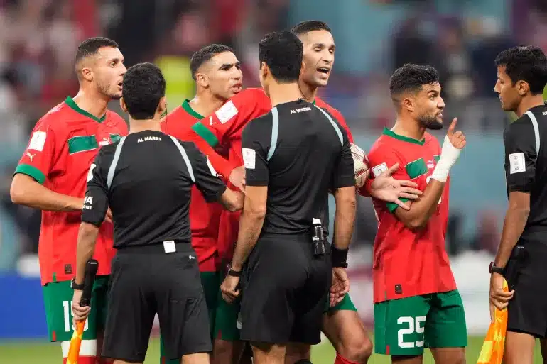 Some of the Morocco players surrounded the referee at the end, but if anything, itโs Croatia that should have had a penalty awarded in that second half.