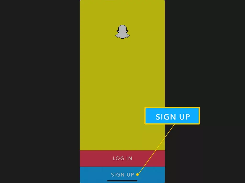 If you want to create a new Snapchat account, you’ll need to log out of your current one or download the program on a separate mobile device if you have one. To create an account, tap the Sign Up button.