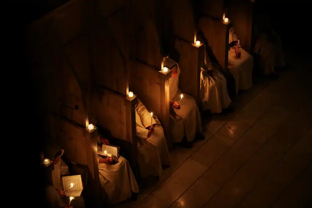 Catholic nuns from the sisters of Bethlehem hold candles as they take part in the Christmas Eve mass at the Beit Jamal Monastery near Beit Shemesh.