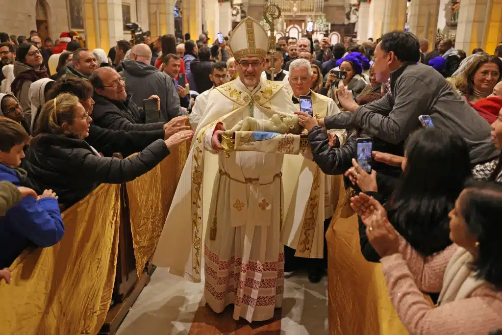 “We are living in very difficult challenges,” he said in his sermon at the church, citing the Israeli-Palestinian conflict and the war in Ukraine. “But the message of Christmas is a message of peace.”
