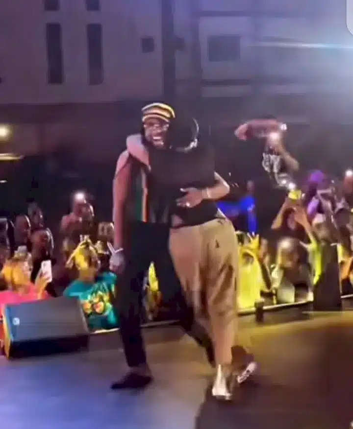 A video has shown the moment Nigerian singer Patoranking joined his colleague Tiwa Savage on stage at a concert.