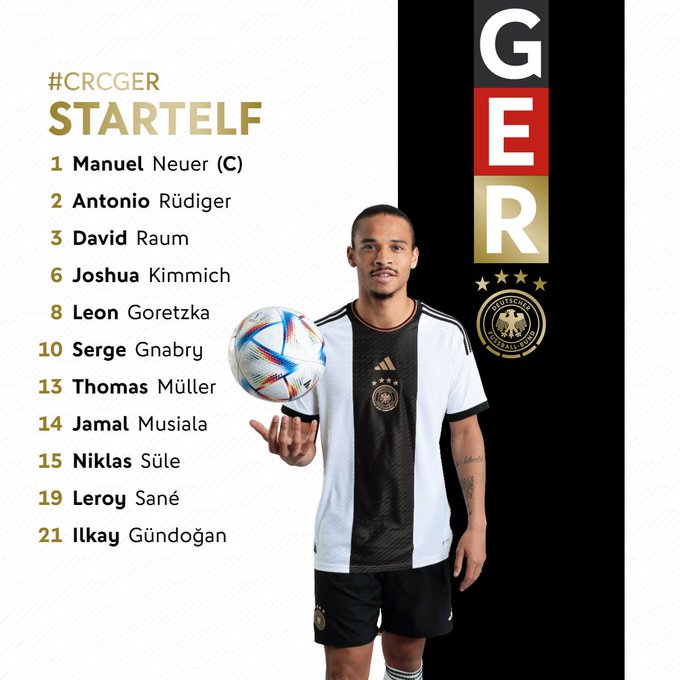 Germany XI: Neuer, Raum (Gotze, 67′), Rudiger, Sule (Ginter, 90+’), Kimmich, Goretzka (Klostermann, 46′) Mueller (Havertz, 66′), Musiala, Gundogan (Fullkrug, 55′), Sane, Gnabry.