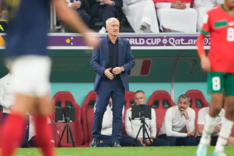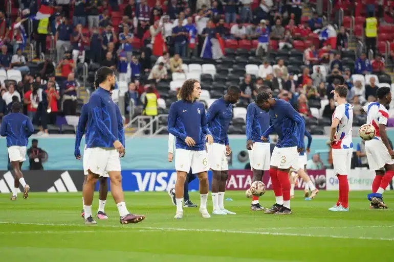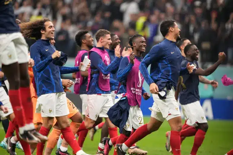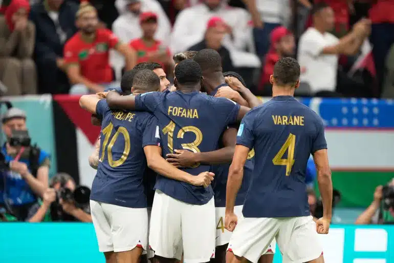 France XI: Lloris, Kounde, Varane, Konate, Hernandez, Griezmann, Tchouameni, Fofana, Dembele (Kolo Muani, 79′), Giroud (Thuram, 66′), Mbappe.