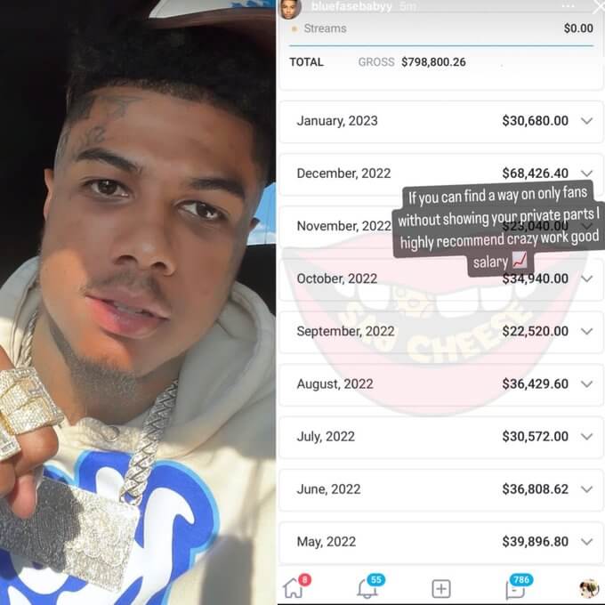 While advising his fans not to show their body parts, the rapper expressed that the platform is a great way to make decent earnings with your talents. Here is how much Blueface earned from OnlyFans in 2023.