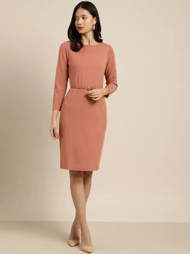 Sheath Dress: A sheath dress is a simple and sophisticated option that’s perfect for a work party or formal event. It’s a fitted style that falls just above or below the knee and can be paired with statement jewelry and high heels.