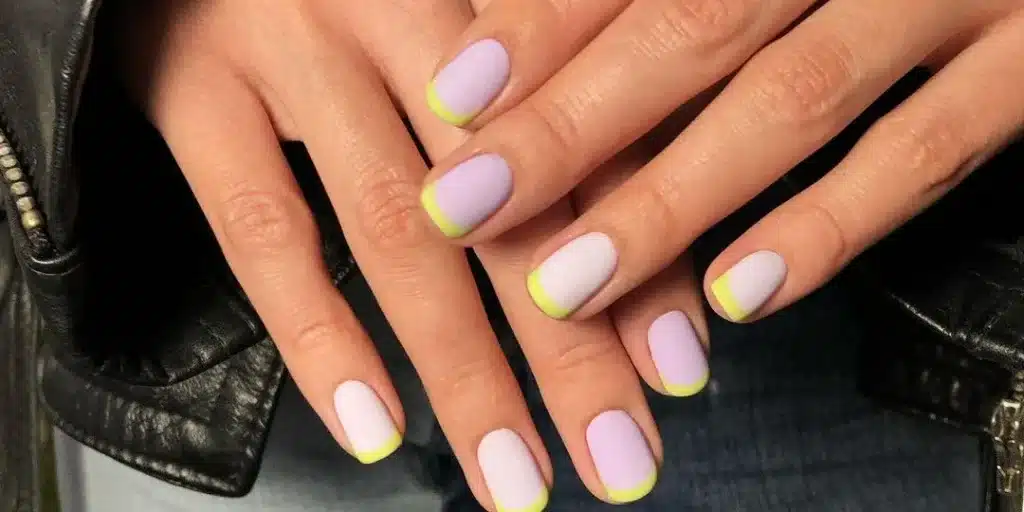Color-blocked nails with neon and pastel hues