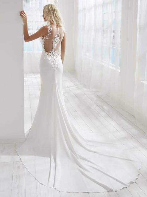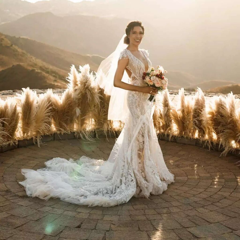 Trumpet lace gown with a sweetheart neckline and a low back.
