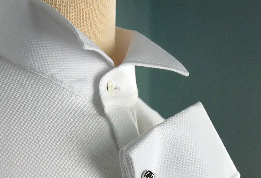 Wingtip collar dress shirt: A wingtip collar dress shirt is a formal option that’s perfect for black tie events or weddings. It looks great with a tuxedo and bow tie.