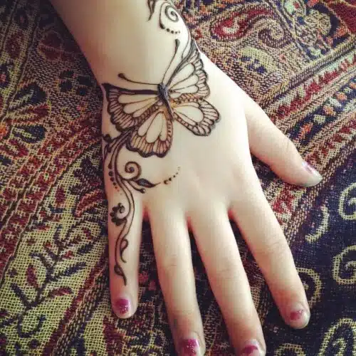 Butterfly Mehndi Design: Butterfly Mehndi designs are a popular choice for kids, especially girls. They often feature intricate butterfly motifs with the addition of flowers and vines.