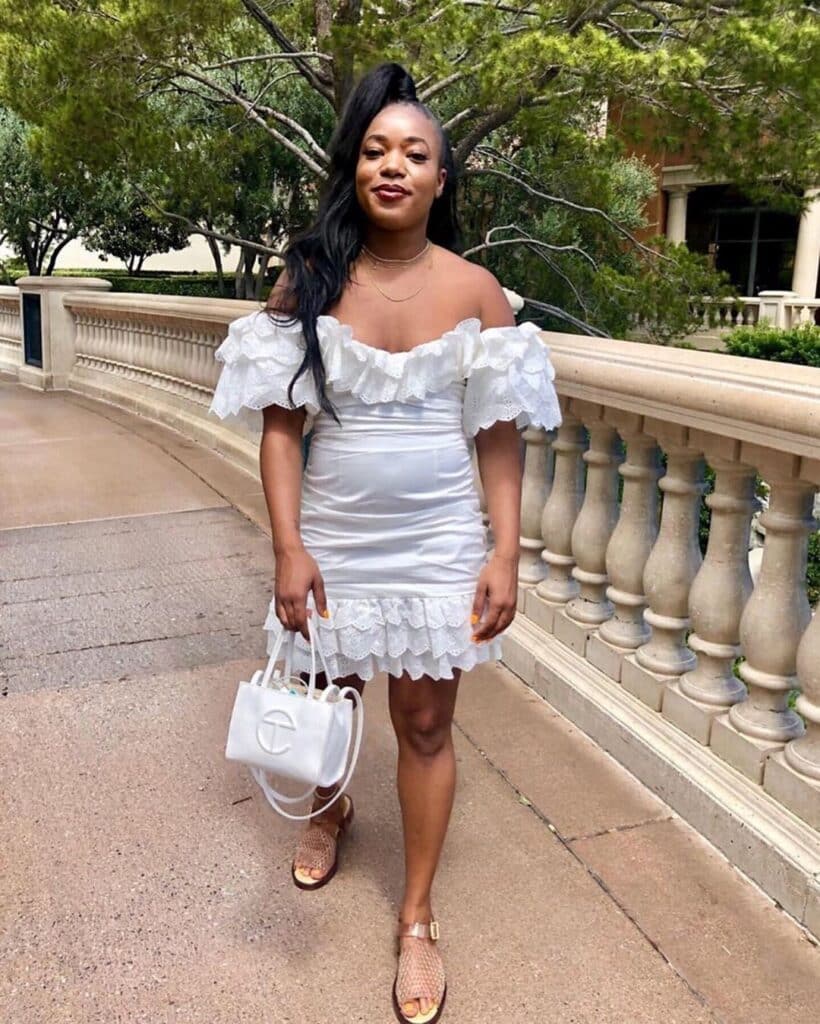 A classic white shopping bag that goes with everything and adds a touch of elegance to any outfit.