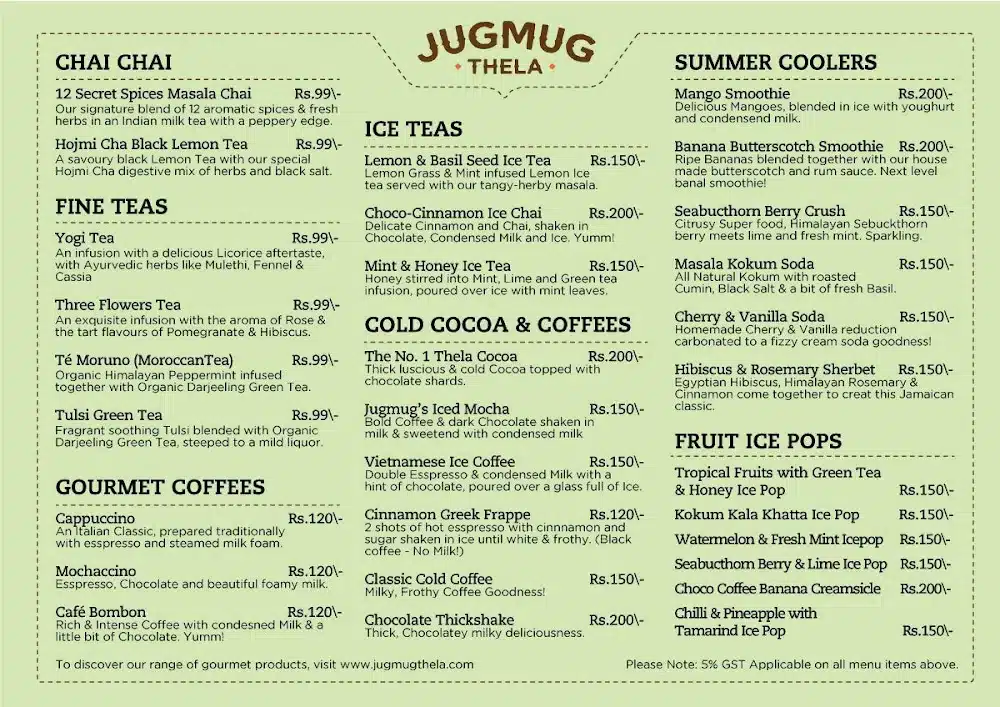 No matter whether your partner loves to hangout at an indoor seating space or an outdoor restaurant, Jugmug Thela has it all.