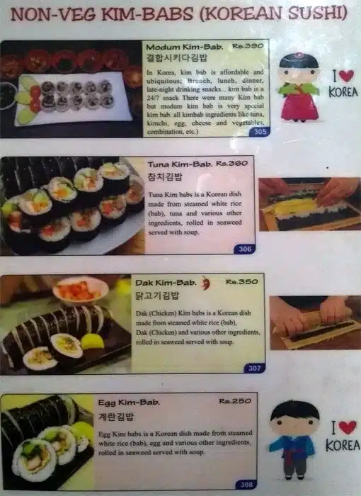 This Korean themed restaurant not only serves dishes like Ramyeon and Black Bean Noodles but also offer famous Korean drinks i.e. Soju and Apple Beer. It also serves Indian dishes like Chicken Curry and Paneer Chilli but with a Korean flavoured twist.