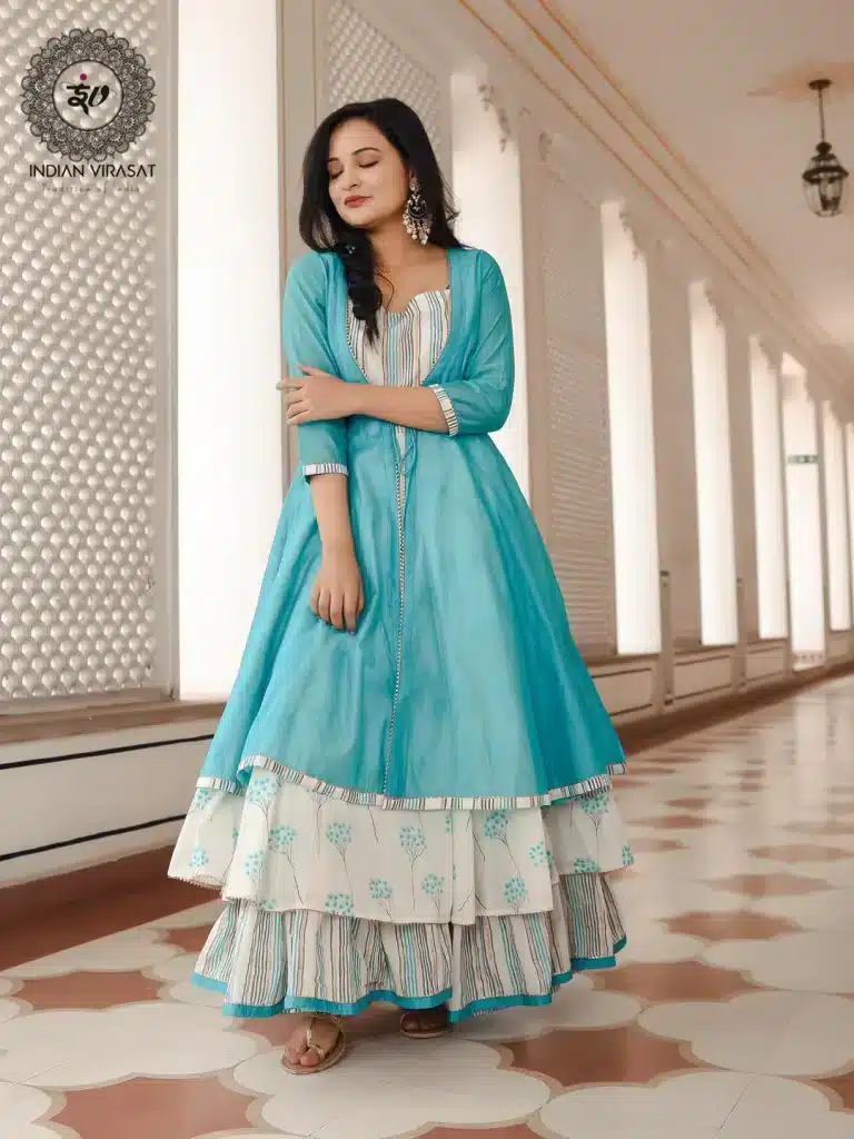 Anarkali dresses come in a variety of styles and lengths, ranging from knee-length to floor-length. They are often paired with a dupatta, a long scarf that is draped over the head or shoulder. Anarkali dresses are popular attire for weddings, festivals, and other formal occasions in India and are worn by women of all ages. They are known for their elegant and feminine look, making them a favorite among Indian women and a popular choice for those who appreciate traditional Indian clothing.