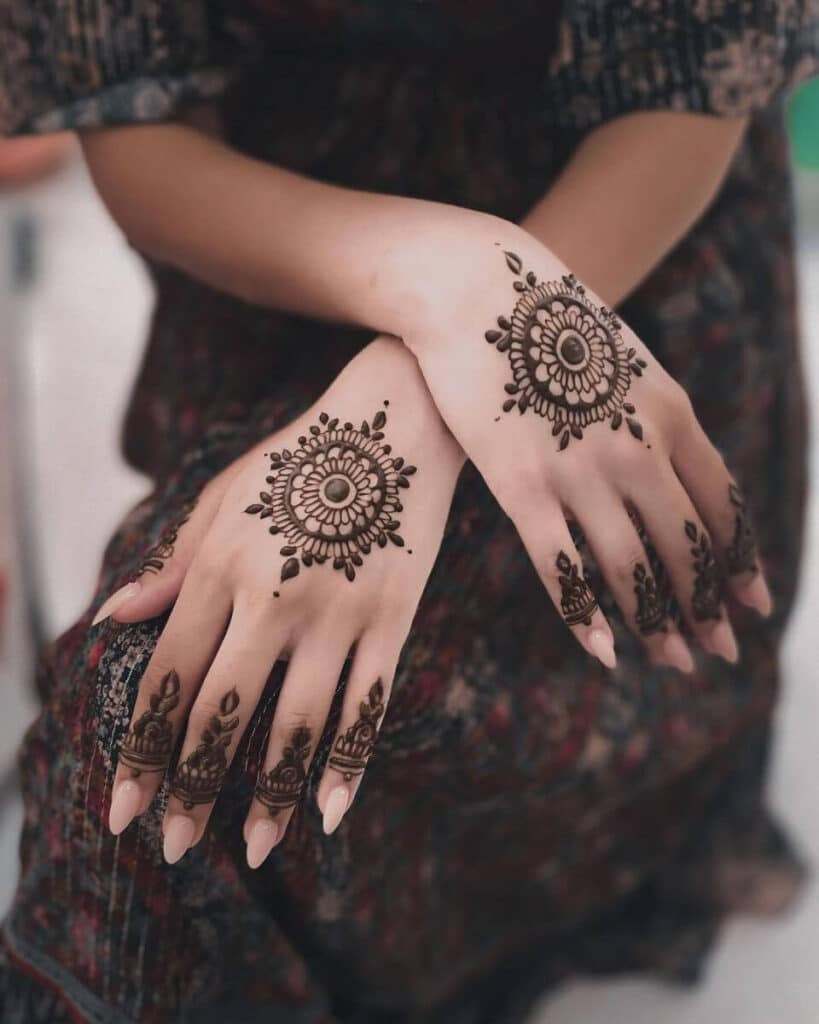 - Mandala: A circular design that is often used in the center of the hand, featuring intricate geometric patterns and details.