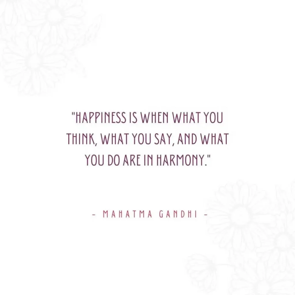 “Happiness is when what you think, what you say, and what you do are in harmony.” – Mahatma Gandhi