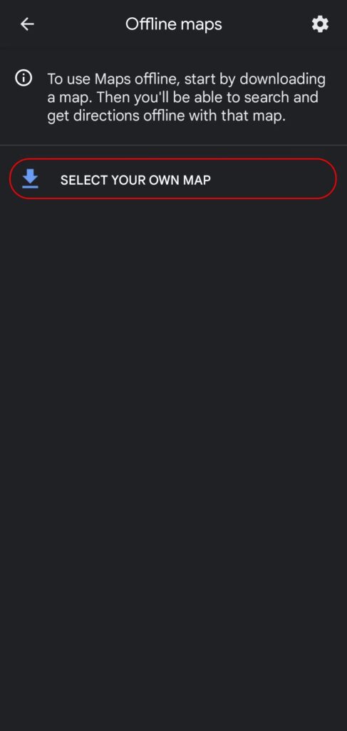 1. On the Offline maps page, tap the gear icon in the upper-right corner to open Offline maps settings. This page has options you can enable or disable.