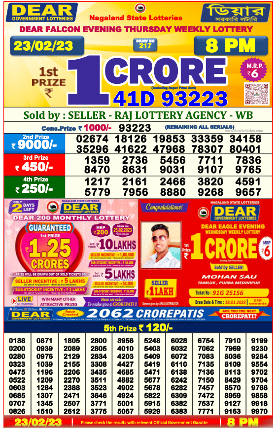 Nagaland State Dear Lottery Sambad Monday, February 27, 2023 Today 6 PM, Winners Ticket Number List LIVE
