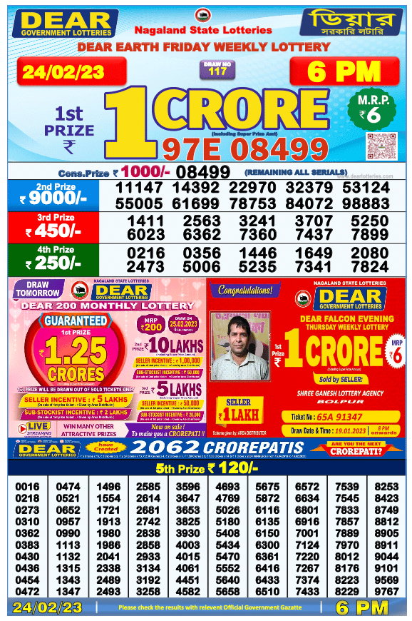 Nagaland State Dear Lottery Sambad Friday, February 24, 2023 Today 6 PM Winners Ticket Number List LIVE