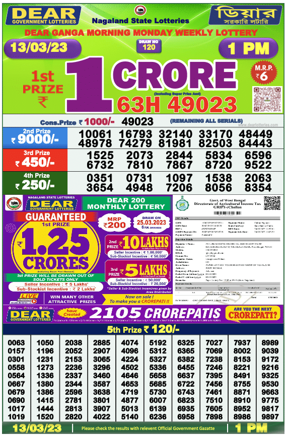 Nagaland State Dear Lottery Sambad Monday, March 13, 2023 Today 1 PM, Winners Ticket Number List LIVE