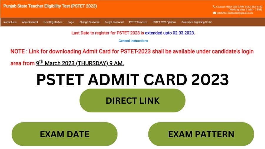 PSTET Admit Card 2023: The admit card for Punjab State Teacher Eligibility Test (PSTET 2023) has been uploaded on 09 March 2023. Candidates who have applied for PSTET Exam can download PSTET Admit Card from the official website. PSTET Admit Cards are available under the candidate’s login.