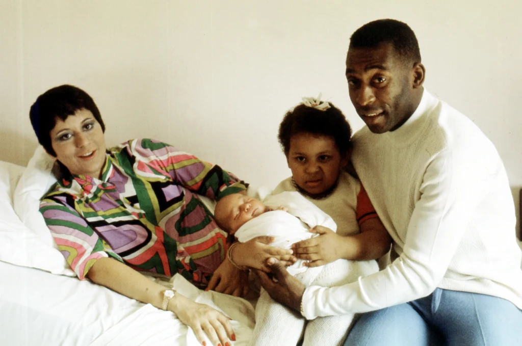 Pele with her wife Rosemeri and daughter just after the birth of his son Edson, in Brazil, in 1976.