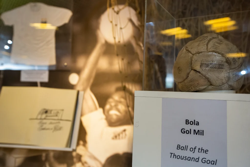 The ball with which legendary Brazilian player Pele scored his 1,000th career goal is displayed during a tour of Maracana stadium in Rio de Janeiro, Brazil.