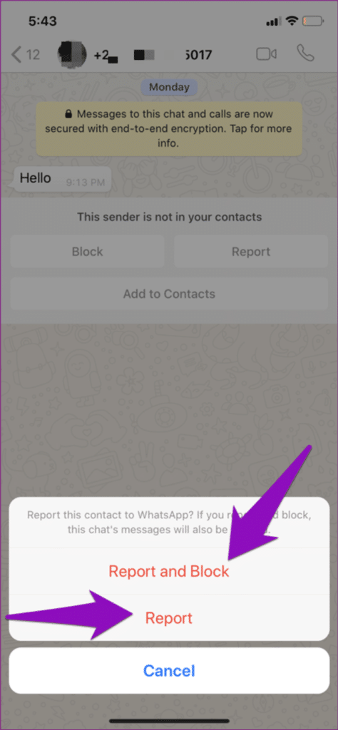 WhatsApp allows you to block and report users who send you problematic messages, ensuring that they can no longer contact you.