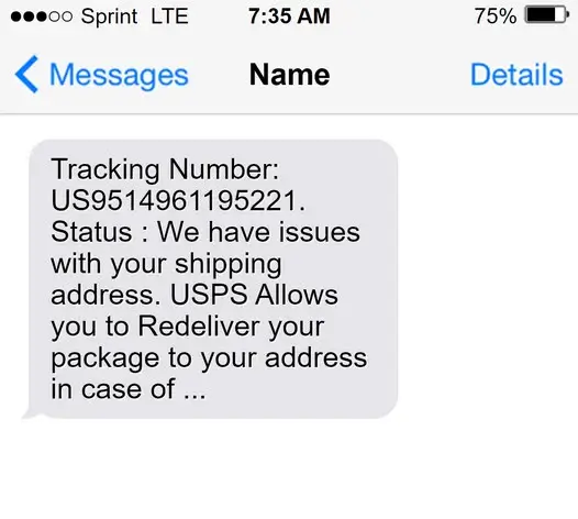 This scam, known as the USPS Redelivery text scam, involves sending fake text messages that include a link to a fake USPS website. The site looks like the official USPS site and prompts users to provide personal information, such as their name, address, and credit card details.