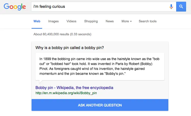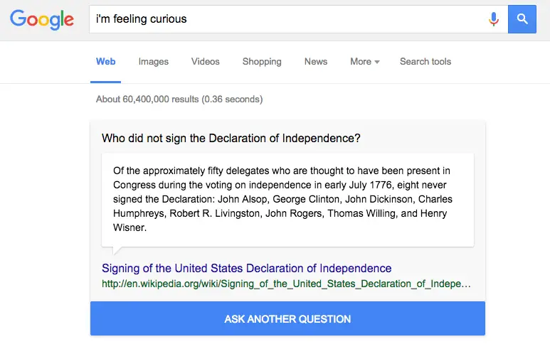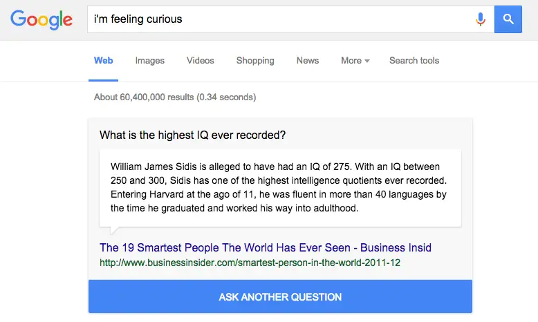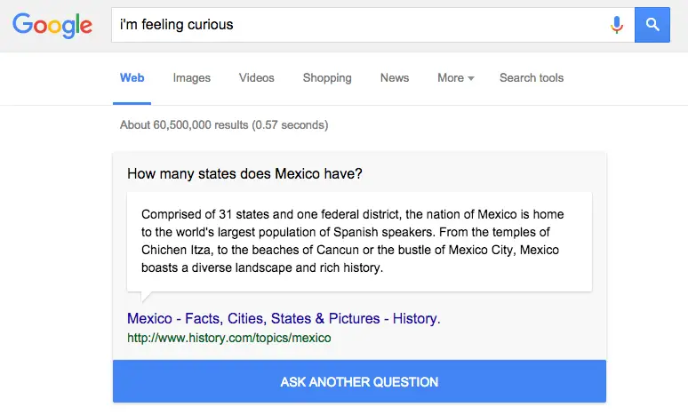 Here are a few additional details you might find helpful about Google’s “I’m Feeling Curious” feature: