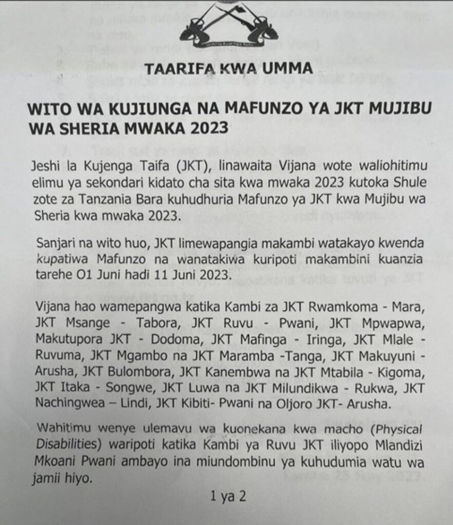 Link ya kuangalia Uchaguzi wa JKT wa Kidato cha Sita mwaka 2023.