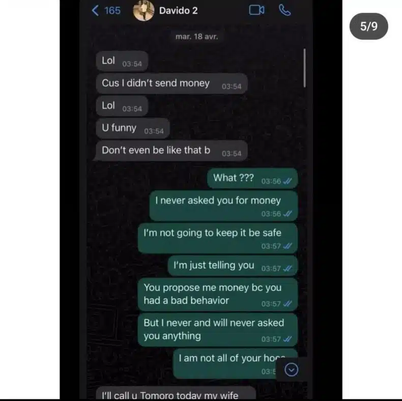 Ivanna Bey proceeded to provide supporting evidence, including screenshots of alleged conversations with the singer and a video of her positive pregnancy test. One of the screenshots showed Davido asking her if the emergency contraceptive she took worked, and she responded by saying she would inform him once it was done. Additionally, there was a screenshot where the singer inquired about meeting her in Paris at a specific hotel.